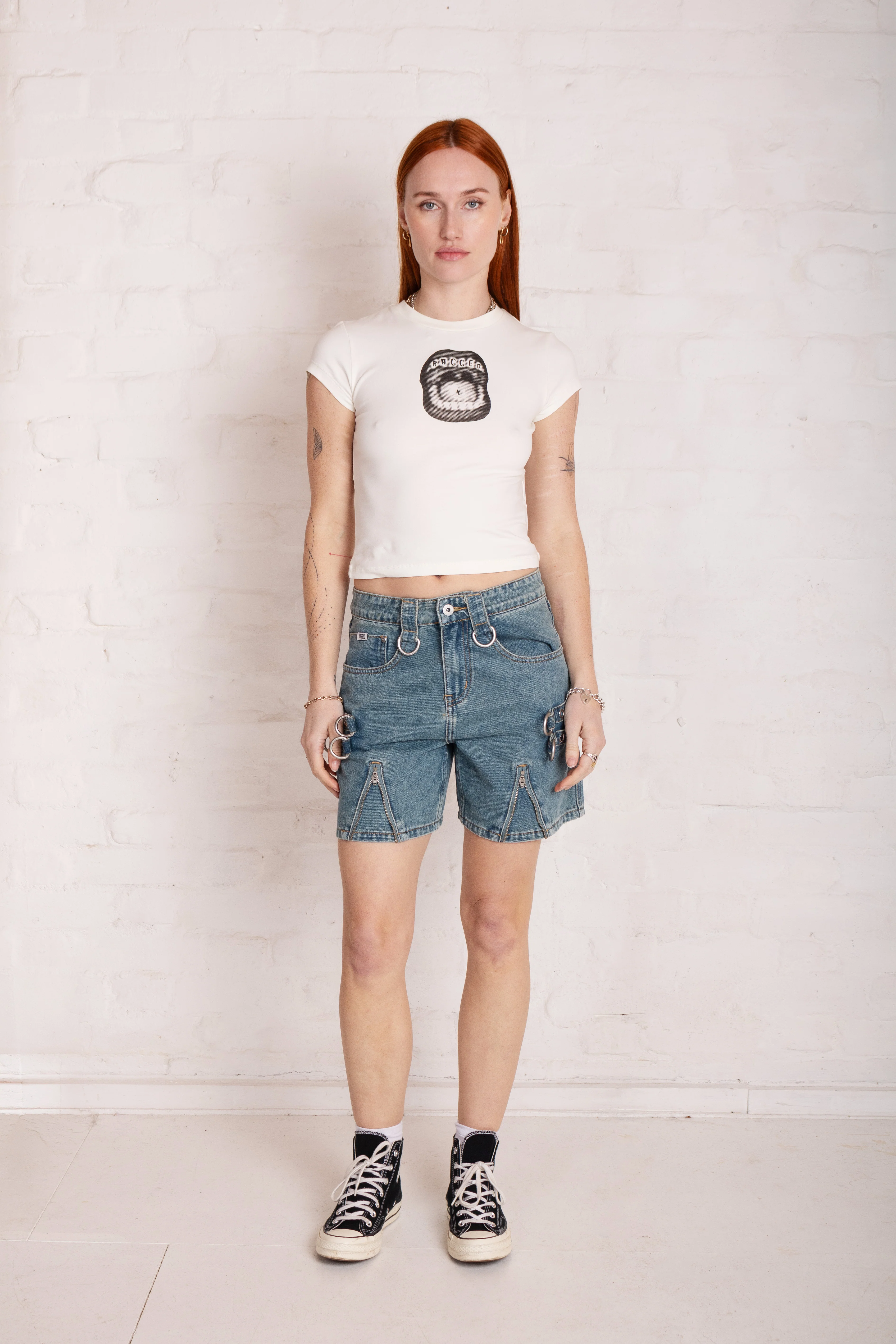 - Signature Ragged vegan leather logo patch and cross stitch on back pockets
